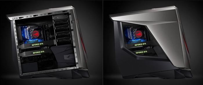 Asus ROG GT51CA system is available in several configurations. As the processor may be Intel Core i5-6600K or Intel Core i7-6700K, moreover, by pressing the Turbo Gear button first automatically overclock to 4.3 GHz, and the second - up to 4.6 GHz. The system is based on Asus motherboard chipset Intel Z170. The maximum amount of RAM is 64 GB and it can operate at a frequency up to 2800 MHz.