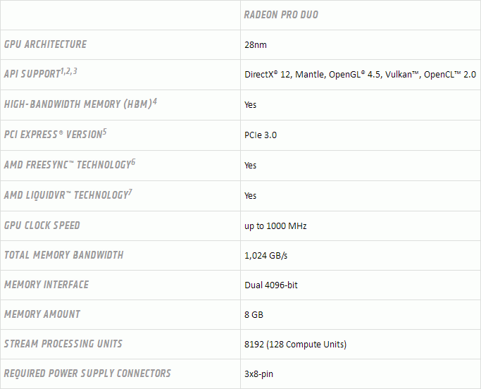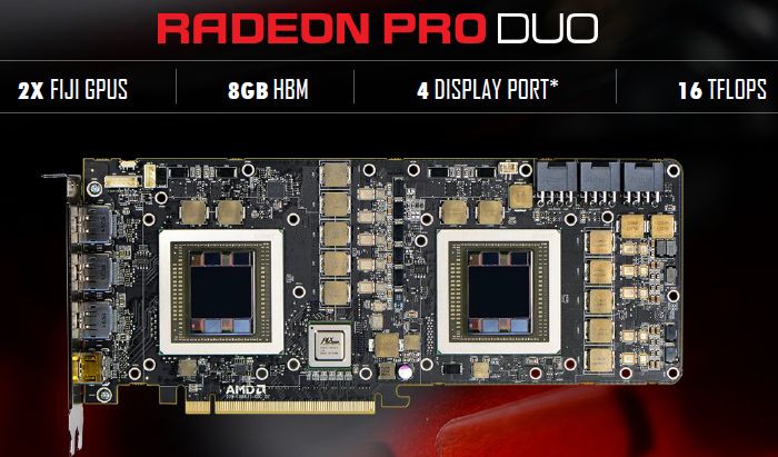 In general, there is nothing new . But AMD partners have tried and began to send out promotional materials dedicated to the exit Radeon Pro Duo - the fastest graphics card in the gaming world by AMD itself. By the way, for such a conclusion the company came as a result of comparing the performance of three cards in 3DMark Fire Strike: Radeon R9 295X2, GeForce GTX Titan Z directly Radeon Pro Duo. In a system with 16 GB of memory and central processor Core i7-5960X is a new dual-processor flagship AMD were stronger, scored 20 150 points at a resolution of 1080p, 11,466 points at a resolution of 1440p, and 6211 points in the resolution of 2160p.