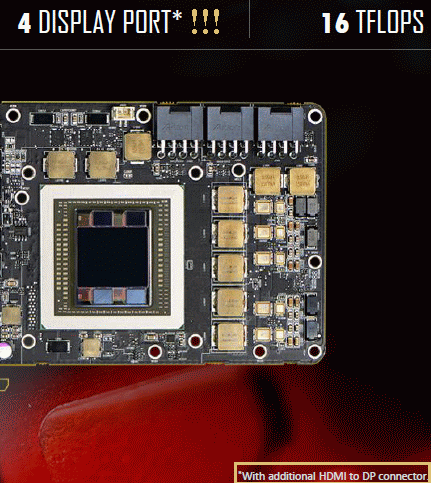 The presentation, which is preserved intact since the GDC 2016, allows us to understand why AMD refers to the presence of four DisplayPort outputs with the obvious presence on the rear panel HDMI output video card. As explained by a tiny footnote, the fourth port is available when using an adapter from HDMI to DisplayPort.