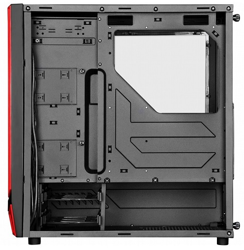 New device made of steel, plastic and acrylic , has dimensions of 450 x 465 x 210 mm and weighs 5.9 kg. Inside Redline RL05 is divided into two sections: the bottom is intended for power supply and drives, and the top - for all other system components. The body can take standard size ATX motherboards, a microATX or Mini-ITX, up to seven expansion cards up to 373 mm, the processor cooling system up to 165 mm and a power supply of up to 220 mm in length. For accommodation there are two drives 2.5- and 3.5-inch drive bays. There is also one 5.25-inch drive bay.