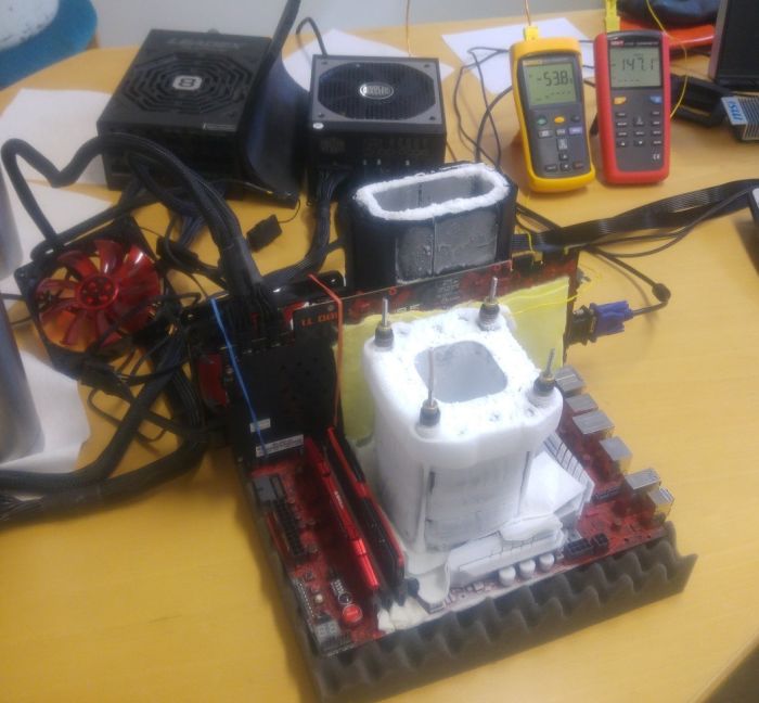 Video card Asus GeForce GTX 980 Ti Matrix Platinum Edition Swedish was overclocked to 1900/8800 MHz, using liquid nitrogen, and the CPU Core i7-6700K with Hyper-Threading disabled and four active cores could overclock to 6700 MHz.