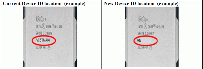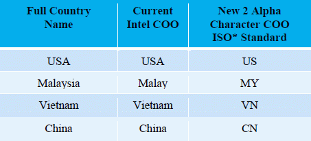In particular, the country in which the processor has been tested and packed, now referred to short - only two characters.