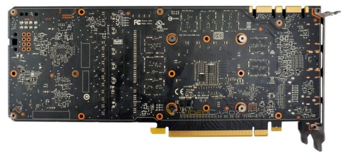Photos printed circuit board on the back side without position on the status of GeForce GTX 1080 reinforcing plate lets you see another Eight-pin power connector.