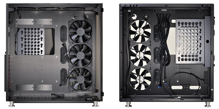 The case Lian Li PC-O9 is made in the form factor Mid Tower, it has dimensions of 482 x 354 x 465 mm and weighs 8.6 kg.  Right compartment new items designed to accommodate the power supply, up to 420 mm, and in it there is a basket designed to six 3.5-inch and two 2.5-inch storage devices.  All other components of the system are located in another compartment, the front and side walls are made of tempered glass .  In this area, the case Lian Li PC-O9 can accommodate ATX motherboards size or MicroATX, graphics cards up to 420 mm CPU cooling system up to 160 mm in height.  The number of expansion slots is eight.
