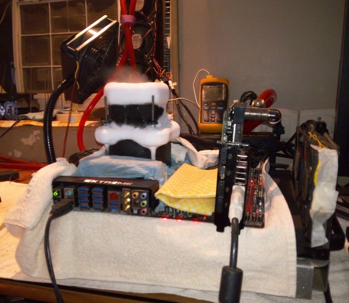 It remains to add that the test configuration was so exotic that in many rankings just could not find competitors. The processor Core i7-5960X, with the help of liquid nitrogen was overclocked up to 5700 MHz. In the same GPUPI for CPU 100M first place was occupied among the eight-solutions with the result 7.220 seconds.