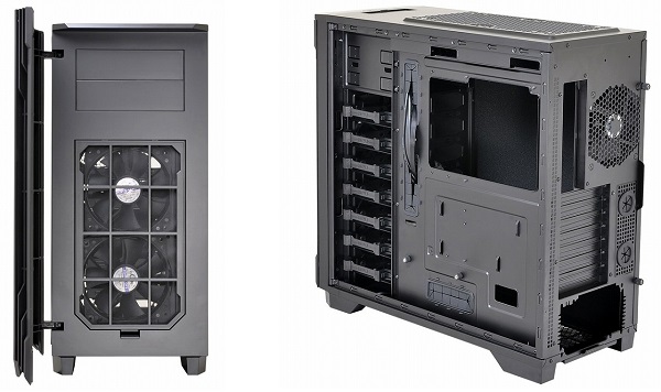Enclosures are supplied with two 120-mm fans on the front panel preset, and one - on the back. Front fan can be replaced by 140-mm and two 120 / 140mm fan can be installed on the top panel. Cases Lian Li PC-K6X and PC-K6SX also support the installation of liquid cooling systems with radiators up to size 280 mm, which can be mounted on the top panel.
