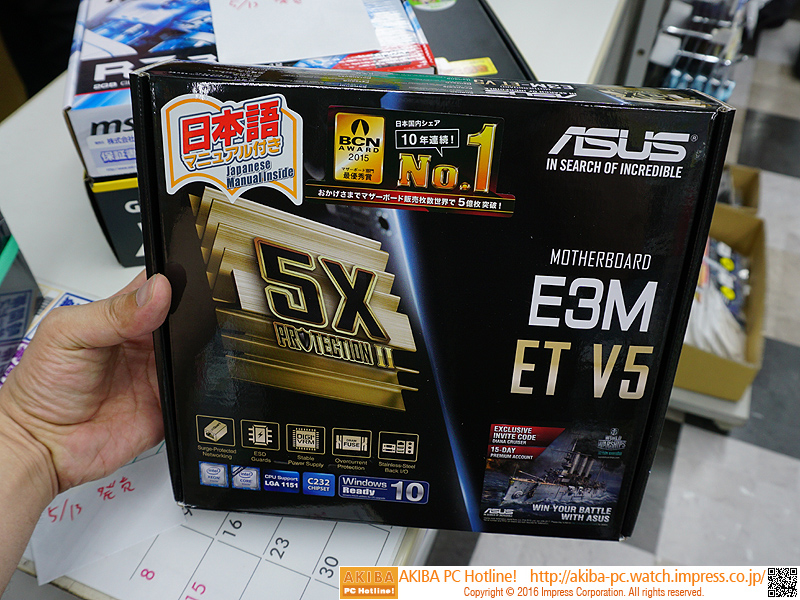 Motherboard ASUS E3M-ET V5 are prefigured in the official website of the manufacturer (the first public version of the BIOS and all dated January this year). However, commercially it was impossible to find. Fortunately, the situation began to improve. Japanese colleagues, were able to detect ASUS E3M-ET V5 in several well-known retail outlets in Tokyo's Akihabara district.