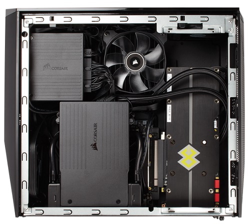 The case comes with a pair of 92-mm fans, but also has a place to mount a 120mm fan radiator or another liquid cooling system. Note that Corsair Bulldog body may come with preinstalled motherboard Gigabyte Z170N-WiFi.