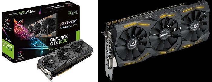 Asus has also introduced two new items: ROG Strix GeForce GTX 1080 and ROG Strix GeForce GTX 1080 OC.  The first of the new products, as is clear from its name, is  factory overclocked - it GPU frequency is raised to 1759/1898 in Gaming mode and up to 1759/1936 MHz in OC mode.  Asus second novelty works with the standard frequencies - 1607/1733 MHz.  Video cards have received updated DirectCU III cooling system with LED RGB-backlit.