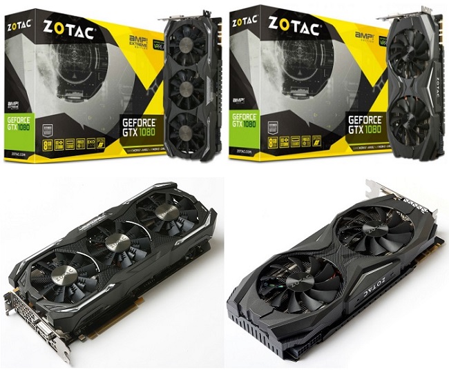 Zotac company  has prepared two new video cards: GeForce GTX 1080 and GeForce GTX AMP 1080 AMP Extreme.  Video cards received  cooling system from the RGB-backlit and two or three fans, respectively.  Both models received two 8-pin power connector, and clearly executed on boards of non-standard design.