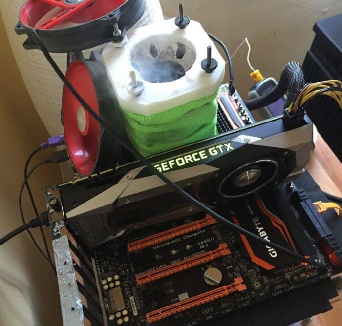 Nevertheless, the Hungarian enthusiast SubaruWRC overclocked Asus brand graphics card to 2115/11120 MHz, being satisfied only standard cooling system version Founders Edition. The CPU Core i7-5960X under liquid nitrogen in the neighborhood overclocked to 5700 MHz with the preservation of all eight cores activity and Hyper-Threading.