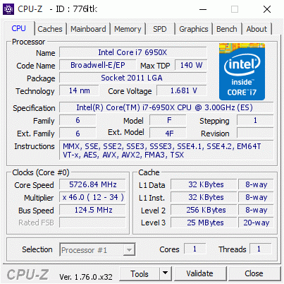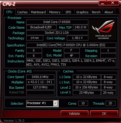 German enthusiast Der8auer, overclocked the Core i7-6950X processor to 5460 MHz HWBot Prime preserving activity of the ten cores and Hyper-Threading. The processor in this case is also cooled with liquid nitrogen.