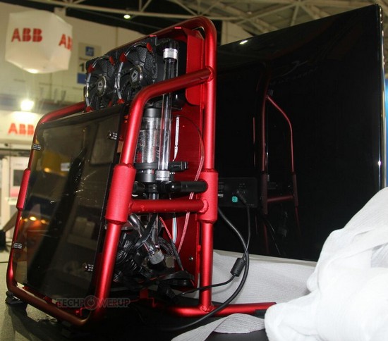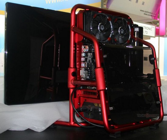 The case, whose name is still unknown, is a frame made of tubes with the back panel of a metal plate, which has a bracket with a standard VESA mount that allows  to assign the case to a large screen diagonal of more than 27 inches. The front part of the body is covered by a translucent panel of tempered glass, and the rest enclosure open.