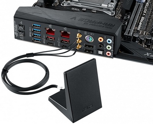 For overclockers Asus placed on the Rampage V Edition 10 collection of various buttons, switches and indicators, which are designed to facilitate the acceleration procedure. Novelty has two Gigabit LAN controllers, and wireless adapter Wi-Fi 802.11ac and Bluetooth. On the rear panel has two ports USB 3.1 Type-A and Type-C. The board is equipped with RGB LED-backlight and RGB connector 5050 to connect the LED strips. In addition to an external antenna Wi-Fi, complete with novelty comes DAC SupremeFX Hi-Fi, which is located 5.25-inch drive bay housing. This DAC is built on the chip ESS Sabre, and is equipped with an operational amplifier and headphone amplifier.