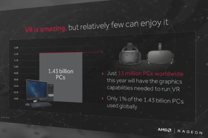 Coduri Raja , who heads the Radeon Technologies Group, formed nine months ago, began to talk about the hard fraction of millions of gamers and virtual reality are left out of technological progress on economic circumstances. AMD sets itself the task to bring to virtual reality in the next few years, to 100 million new users.