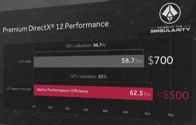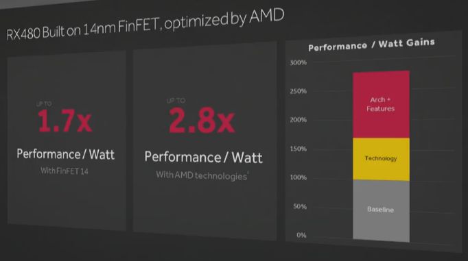 Advanced features in the AMD Radeon RX480 presentation shown on the slide.