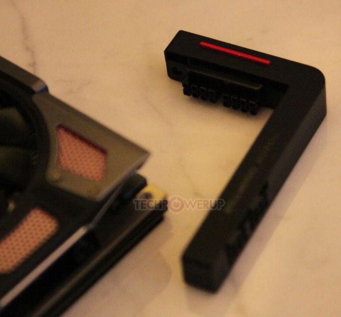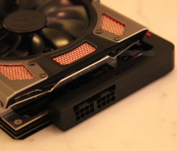 In order to move the power connectors , EVGA is offering a special L-shaped "extender".