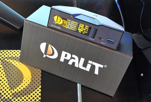 In addition, Palit brought in the field of development electronic information panels - G-Panel.  This panel is equipped with a 3.12-inch LCD display, which can output data on the frequency, voltage and temperature of the video card, the main data about its technical characteristics, and may simply display the time.  The panel can be used separately from the base unit, or it can be set in 5.25-inch drive bay.  In addition to the screen panel has ports USB 3.0 Type-A and Type-C.  The device G-Panel supports all NVIDIA GeForce models.