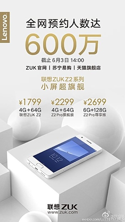 THE NUMBER OF ZUK Z2 ORDER EXCEEDED 6 MILLION