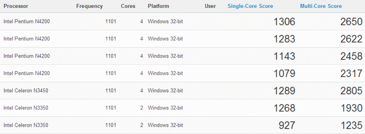 Dual-Core AMD E2-9010 generation Stoney Ridge, if you believe this database, even slightly superior to Pentium N4200, not to mention the other family  Apollo Lake processors.  However, this only applies to the single-core version of the test, in a multi-core Intel processors ahead of Stoney Ridge.