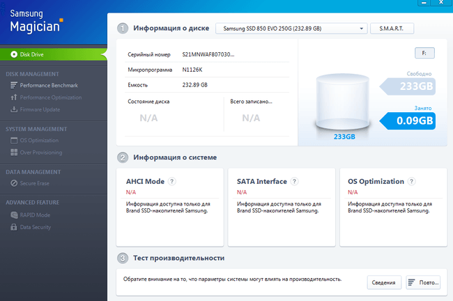 counterfeiting also combines a long serial number (a lot more than the original SSD Samsung) and too many SMART parameters .