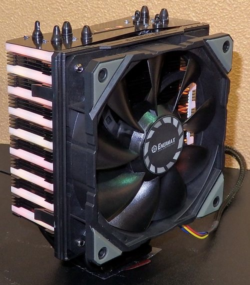 A massive aluminum heatsink are four U-shaped nickel-plated copper heatpipes that are in direct contact with the processor cover. For air cooling fan meets a fan Enermax, moreover it is very similar to the recently introduced DFPressure . The manufacturer claims that NEOllusion able to cope with the heat from the processors more than 200 watts.