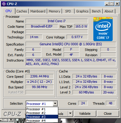 In a single server system, which was at the disposal of Filipino, there was a place for four processor Xeon E7-8890 v4, which, were clocked at 2.7 GHz with air cooling. True, CPU-Z screenshot says only 2.4 GHz . Total 96 processor cores, each of which supports Hyper-Threading. The regular top in Cinebench R15 corresponds to the result of 8299 points. Enthusiast claims that PiFast these processors operate at a frequency of 3.2 GHz. The main part of the experiments he carried out using a pair of processors Xeon E5-2687W v4, which worked at a frequency of 3.2 GHz.