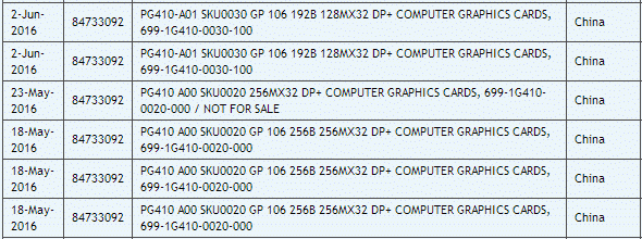 In the Indian customs basis Zauba can be found mention of graphics cards based on the GP106, which cross borders as a version with a 192-bit bus, and in the version with a 256-bit bus. Judging by the mention of the layout of memory chips in the first case its total volume of up to 4 GB, and the second - 8 GB.