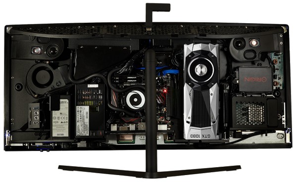Omni Bar is equipped with 34-inch curved display with an aspect ratio of 21: 9 resolution of 3440 x 1440 pixels and 60Hz. As is the case with all Origin PC systems, where the user may also choose Omni components. It should be noted that the base of a monoblock is a common motherboard size Mini-ITX, which allows the user to update their own in the future in system configuration.