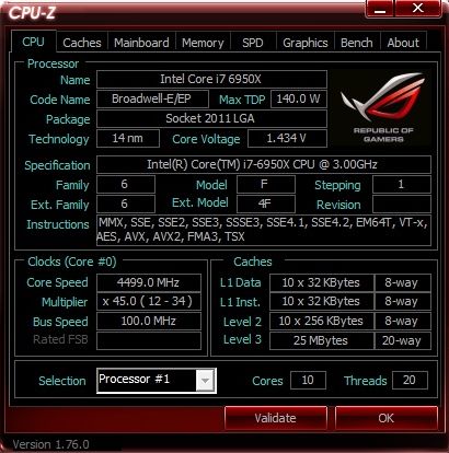 At a processor frequency of 4.5 GHz Core i7-6950X retained the activity of all ten cores and Hyper-Threading. Related Products :
