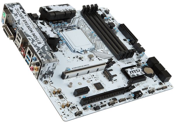 The first striking difference - the color scheme. So, B150M Mortar Arctic built signet on a white board, and B150M Bazooka Plus - a more traditional black. A set of expansion slots at the new products also varies . So, B150M Bazooka Plus board has one PCIe 3.0 x16 slot and two PCIe 3.0 x1, and the board B150M Mortar Arctic housed two slots PCIe 3.0 x16 (x16 / x4), one PCIe 3.0 x1 slot and M.2 (key E), designed for the Wi-Fi module.