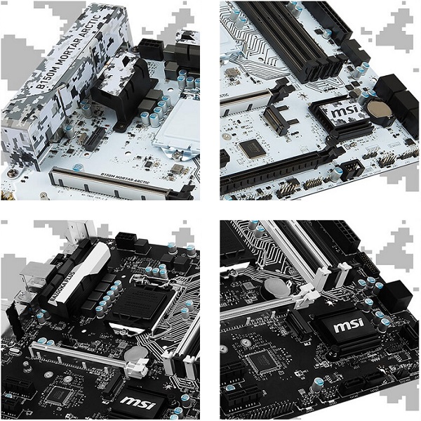 Both motherboards have four slots for DDR4-2133 memory modules. To connect storage devices have new items one slot M.2 (M key rate 32 Gbit / s), and six ports SATA 3.0. On the back of each motherboard ports are USB 3.1 Type-C. There are two gigabit network controllers Realtek RTL8111H. But the sound system in different : in B150M Mortar Arctic used codec Realtek ALC892, and B150M Bazooka Plus - Realtek ALC887. Also note that the two new items are equipped with adjustable white LED backlight.