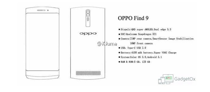 The prototype tested in GFXBench Oppo Find 9 was equipped with a 5.5-inch touchscreen Super AMOLED display with a resolution of 1920 x 1080 pixels (Full HD), 4 GB of RAM, eight cores MediaTek 6755. A second version of the Oppo Find 9, according to sources, will receive a 5.5-inch screen with a resolution of 2560 x 1440 pixels (Quad HD), Qualcomm Snapdragon 821 chip and 8GB of RAM. Also, both versions will be equipped with 21-megapixel main camera with optical image stabilization, 16-megapixel front and battery at 4100 mAh support function VOOC fast charging.