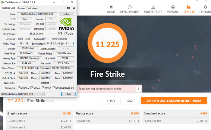 The results of synthetic tests graphics card NVIDIA GeForce GTX 1060