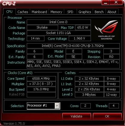 To pass the test in 5.984 seconds, Core i3-6100 processor must overclock to 6.5 GHz while maintaining the activity of two cores and Hyper-Threading. basic oscillator frequency in this case was raised to 176 MHz. The experiment was conducted using a motherboard Asus Maximus VIII Extreme. The CPU is cooled by liquid nitrogen.