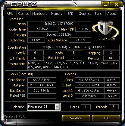 In this case, the processing speed has reached 6522 MHz, it retains the activity of all four cores and Hyper-Threading.