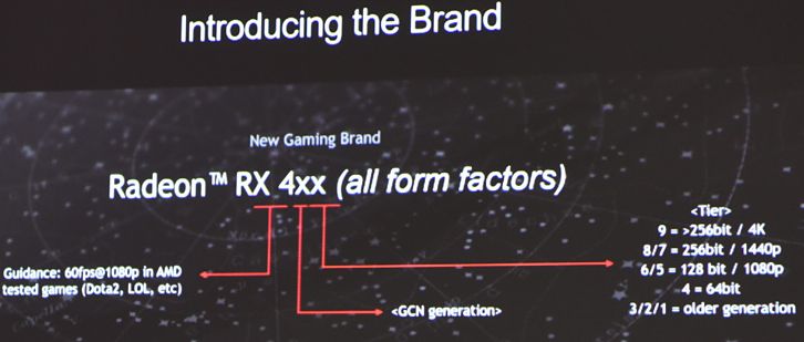 So, AMD graphics solutions now in its designation not only contain references to the performance level (due to the presence or absence of the suffix "RX"), but also the generation of graphics architecture (4xx), and bit memory bus. Average symbol (x4x) when moving through the hierarchy down "rests" in the 64-bit bus, but the slide contains a reference to the video card output capabilities with indices such as 43x, 42x and 41x. They are reserved for the last generation graphics solutions, which are traditionally "to change the sign." Perhaps this is an indirect indication that Baffin remain in a junior Polaris graphics processor family.