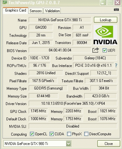 Greek enthusiast sofos1990 updated 3DMark03 record for single video card overclocked GeForce GTX 980 Ti brand GALAX to the frequencies 2000/8812 MHz using liquid nitrogen. The CPU Core i7-6700K with four cores active overclocked to 6700 MHz frequency.