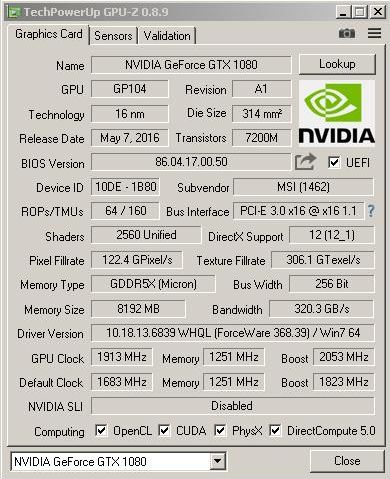 The frequencies of the graphics card with a similar method of cooling were increased to 2214/10008 MHz. . In GPUPI 1B test result obtained 14.659 seconds - this is the third place among all GeForce GTX 1080 and seventh among the single cards in general. Related Products :