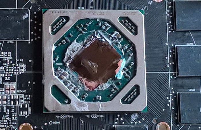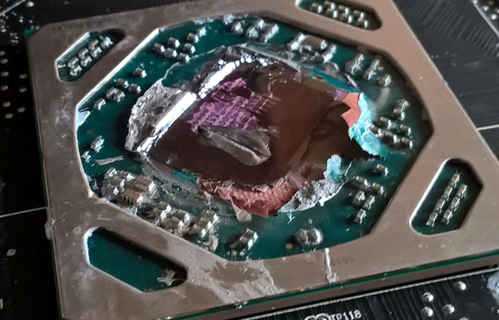 One Reddit user resource reported that in the process of replacing the cooler on the graphics card AMD Radeon RX 480 he accidentally hurt the GPU package.  Hot-melt adhesive that secures the heatsink base on the chip surface.