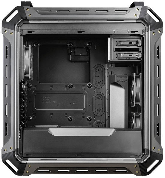 Panzer Max has dimensions of 266 x 612 x 556 mm and weighs about 11 kg, indicating the use of steel thick enough . New case supports the installation of motherboard sizes up to E-ATX, video card up to 390 mm CPU cooling system up to 170 mm in height. To accommodate storage devices, there are two universal 2.5- / 3.5-inch drive bays and four 2.5-inch drive bays. There is also a pair of 5.25-inch bays and eight expansion slots.
