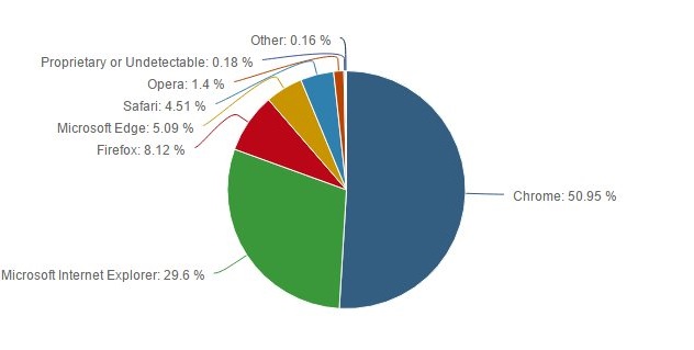 Microsoft Edge with 5.09% of users may eventually catch up as Mozilla Firefox, owns only 8.12%.