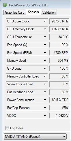 Two NVIDIA Titan X graphics cards was enough to operate at frequencies 2075/10904 MHz, with full-time modification of the cooling system was not exposed. The author once said that after changing the video card cooling system, you can count on more.