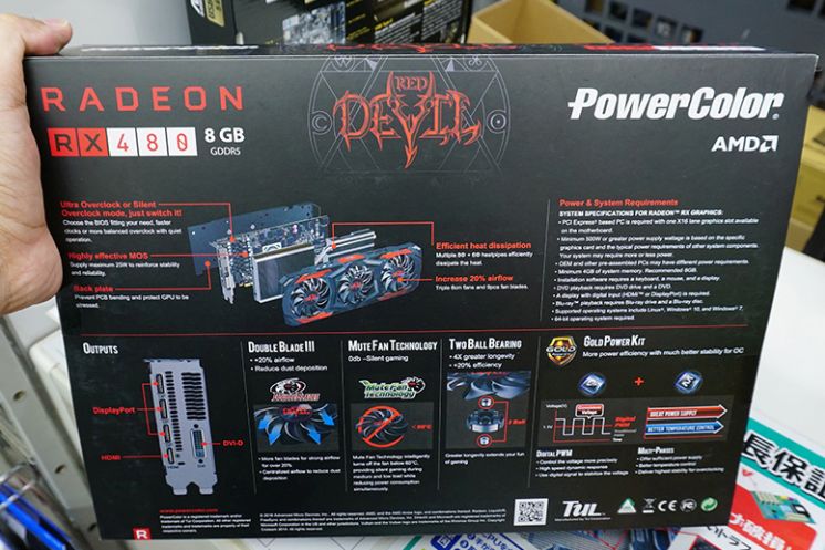 AKIBA PC Hotline during the traditional "weekend raid" on the local computer market has found a brand new graphics card Radeon RX 480 by the PowerColor, equipped with Eight pin connector for additional power supply and cooling system with three fans.
