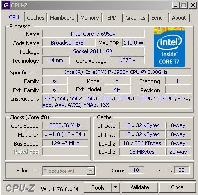 At the end of the week German enthusiast Dancop overclocked Core i7-6950X to 5308 MHz with the help of liquid nitrogen, while maintaining the activity of a ten cores and Hyper-Threading.