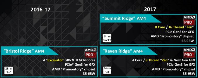If we talk about desktop processors,  eight-core Summit Ridge Socket AM4, which AMD shows live from the beginning of June, in the "road map" refers to 2017.