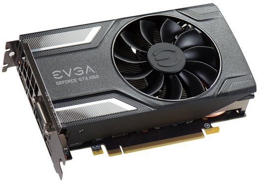 Graphics card EVGA GeForce GTX 1060 3GB works with the standard frequencies, equipped with a compact cooling system ACX 2.0 with one fan and aluminum heatsink, and its power system includes a 3 + 1 phase and 6-pin power connector.  Its price in Europe is 220 euros.  Model GeForce GTX 1060 3GB SC differs from the previous one only by the presence in the cooling system of heat pipes and copper base and GPU factory overclocked to 1607/1835 MHz.