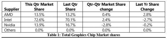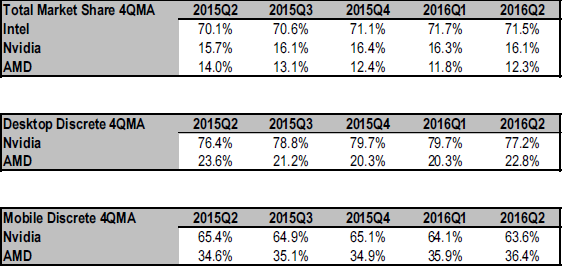 In the second quarter sales volumes of cards fell 20 percents but AMD increased its market share | ||||||||||||||||||||