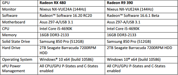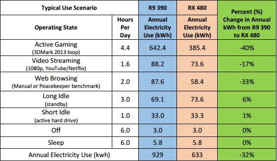 In the desktop segment, AMD compared the Radeon R9 390 and Radeon RX 480, to show how to reduce power consumption under typical operating conditions. Video cards are installed in the same system units (see. Below), the average reduction in energy consumption during the transition to Radeon RX 480 has reached 32%.