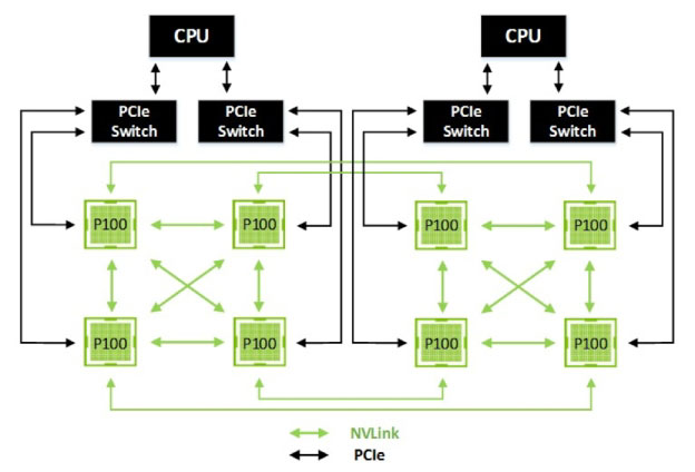 NVIDIA's highly appreciated NVLink interface and NVLink 2.0.  According to the developers - is an uncompromising alternative to the PCI Express bus.  The rate of exchange for the one-slot PCI Express 3.0 x16 reaches 32 GB / s, and even in the case of PCI Express 4.0, which will appear next year in the x16 configuration exchange rate does not exceed 64 GB / s.  Block NVLink structure in this respect is more flexible and forward-looking.